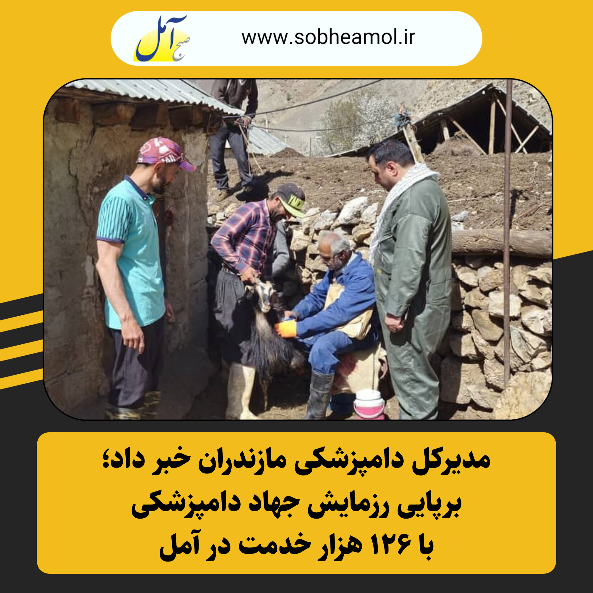 مدیرکل دامپزشکی مازندران از برپایی اولین رزمایش جهاد دامپزشکی و ارایه ۱۲۶ هزار خدمت در مناطق کوهستانی آمل خبر داد.حمزه آقاپور کاظمی در پایان اولین
