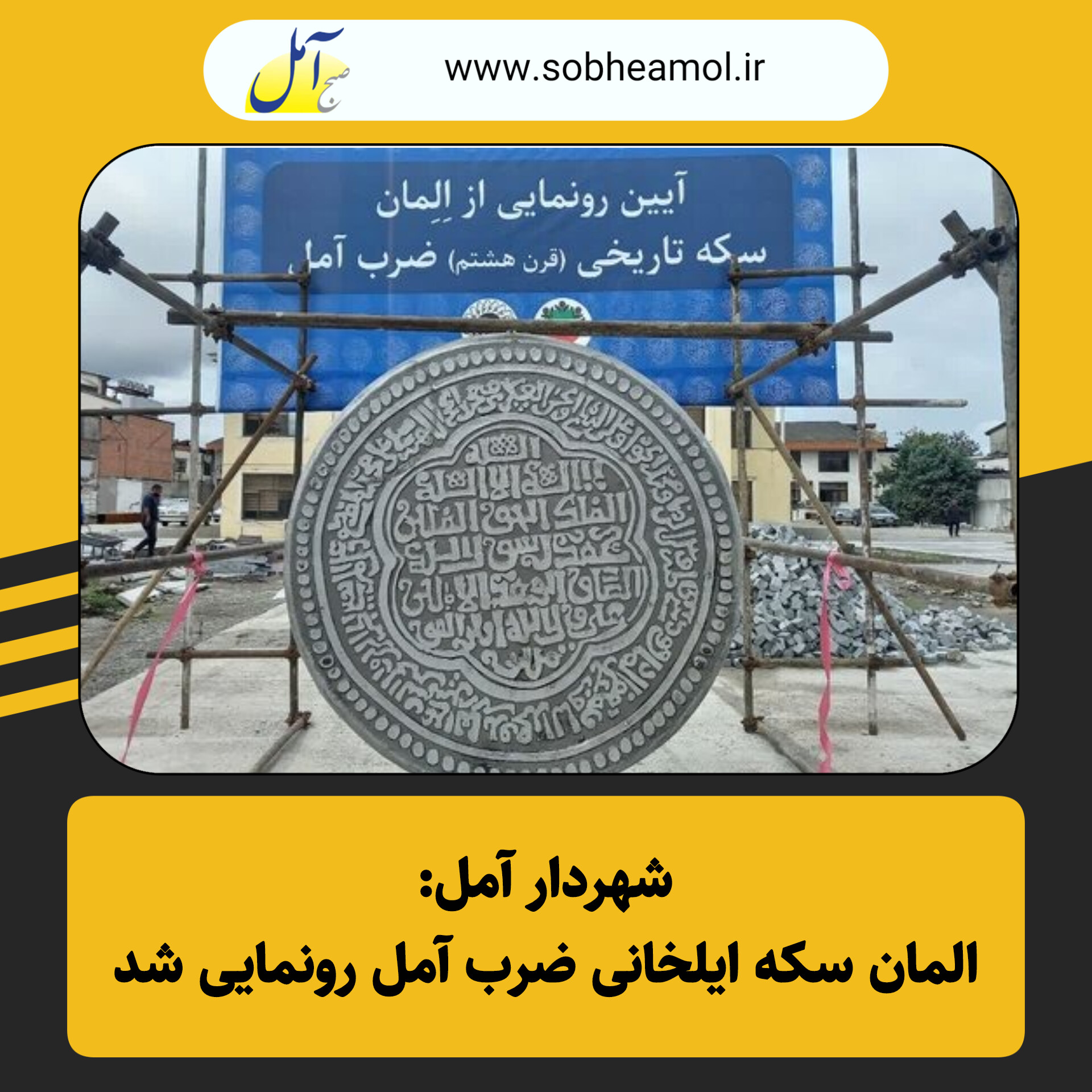در آیین رونمایی از المان سکه تاریخی ضرب آمل در ابعاد ۲ در۲ مترمربع بزرگنمایی که به همت شهرداری آمل ساخته شده است، مدیران امور شهری حضور داشتند. این سکه در دوره سلطنت سلطان محمد خدابنده در آمل ضرب میشد و از خصوصیات بارز آن و در نمای روی سکه نام شهر آمل، سال ضرب و آیهای از سوره مبارکه فتح نقش بسته شده است. در پشت این سکه، اسامی ائمه معصومین (ع) بهصورت دایرهای نقش برجسته شده است.