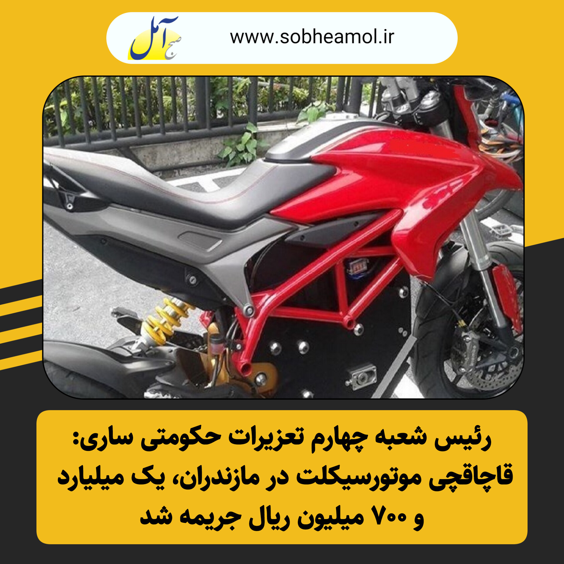 رئیس شعبه چهارم تعزیرات حکومتی ساری از جریمه یک میلیارد و ۷۰۰ میلیون ریالی قاچاقچی موتورسیکلت خبر داد و گفت: پرونده قاچاق موتور سیکلت سنگین