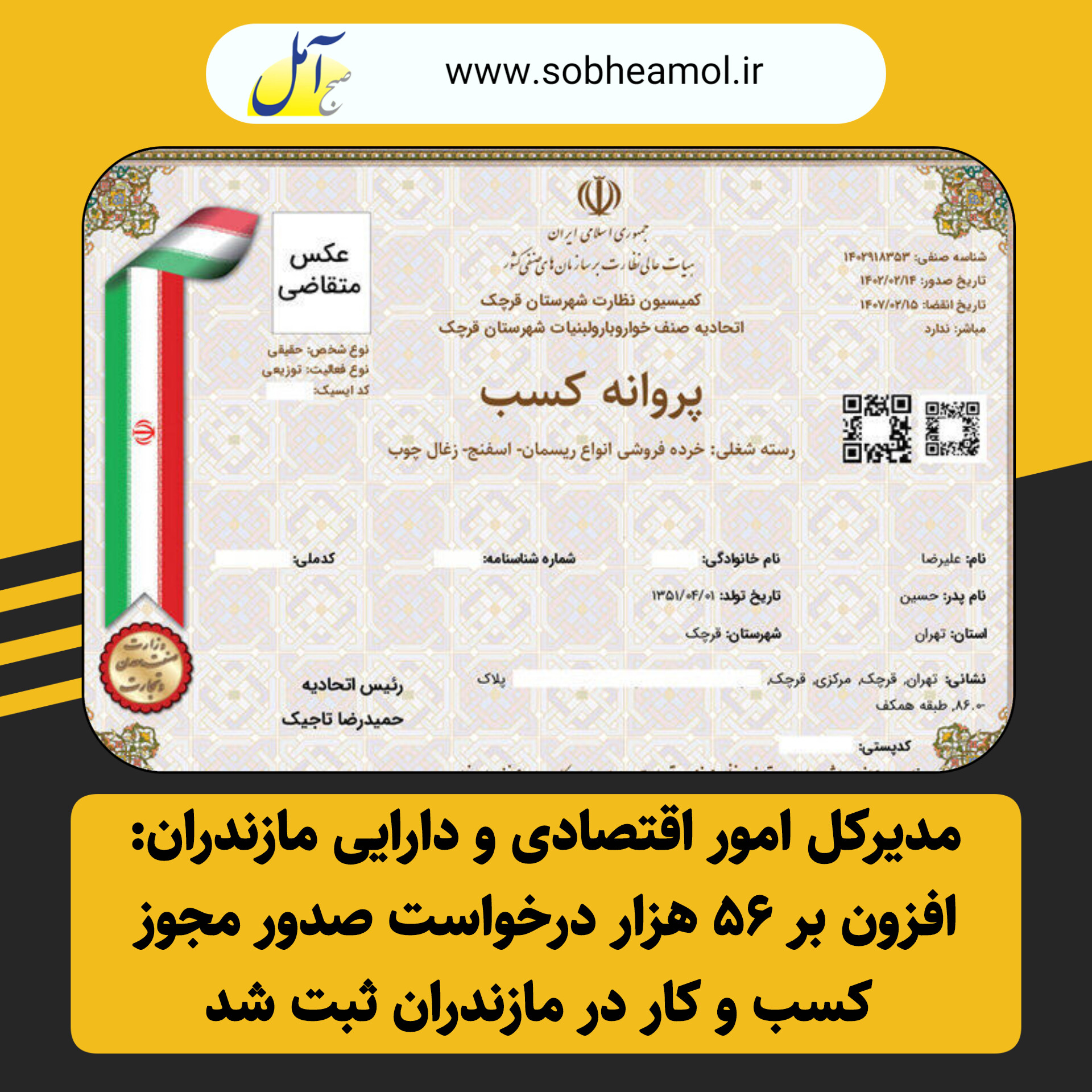 مدیرکل امور اقتصادی و دارایی مازندران از ثبت ۵۶ هزار و ۵۰ فقره درخواست صدور مجوز کسب و کار در هشت ماهه منتهی به آبان سال ۱۴۰۴ به صورت الکترونیکی خبر داد.