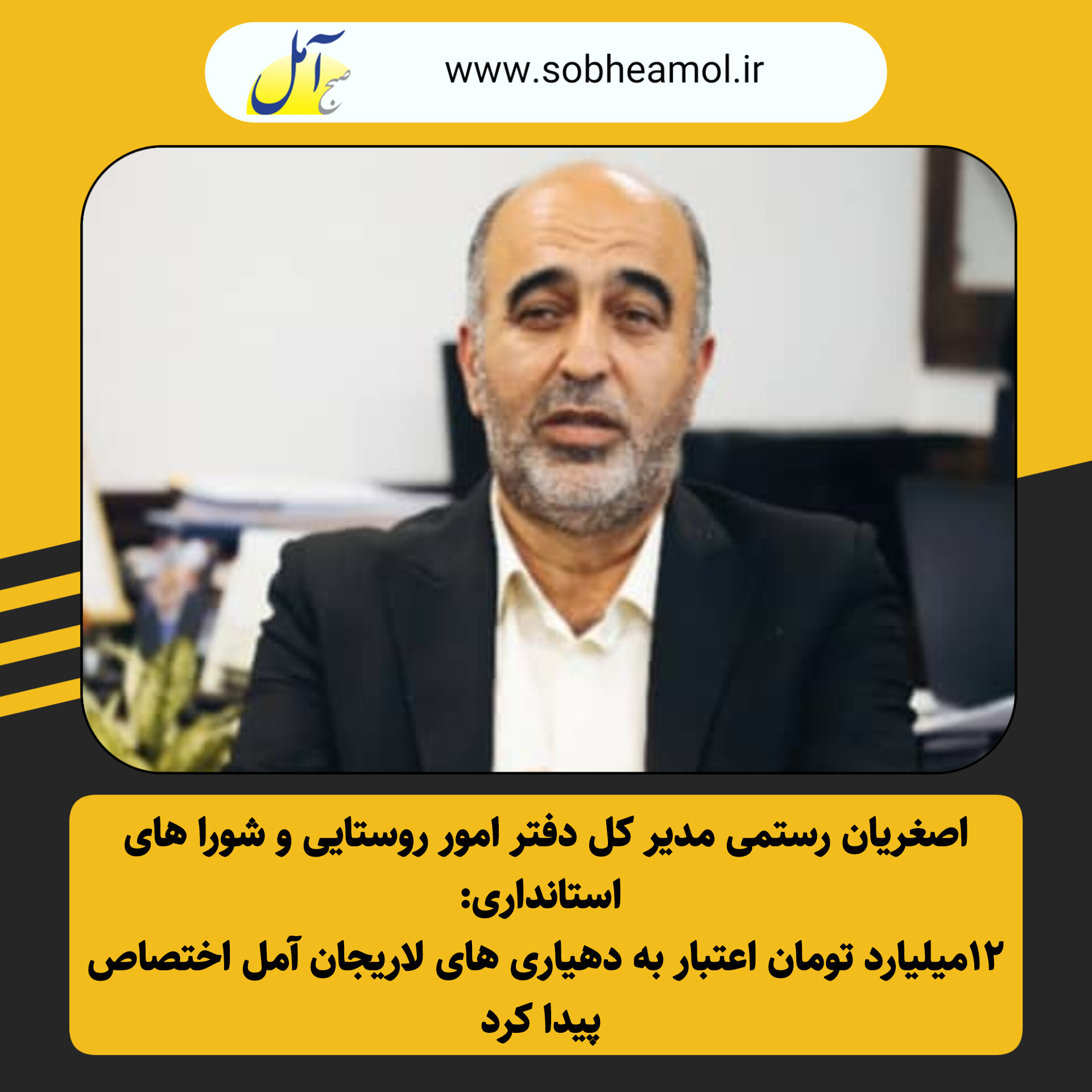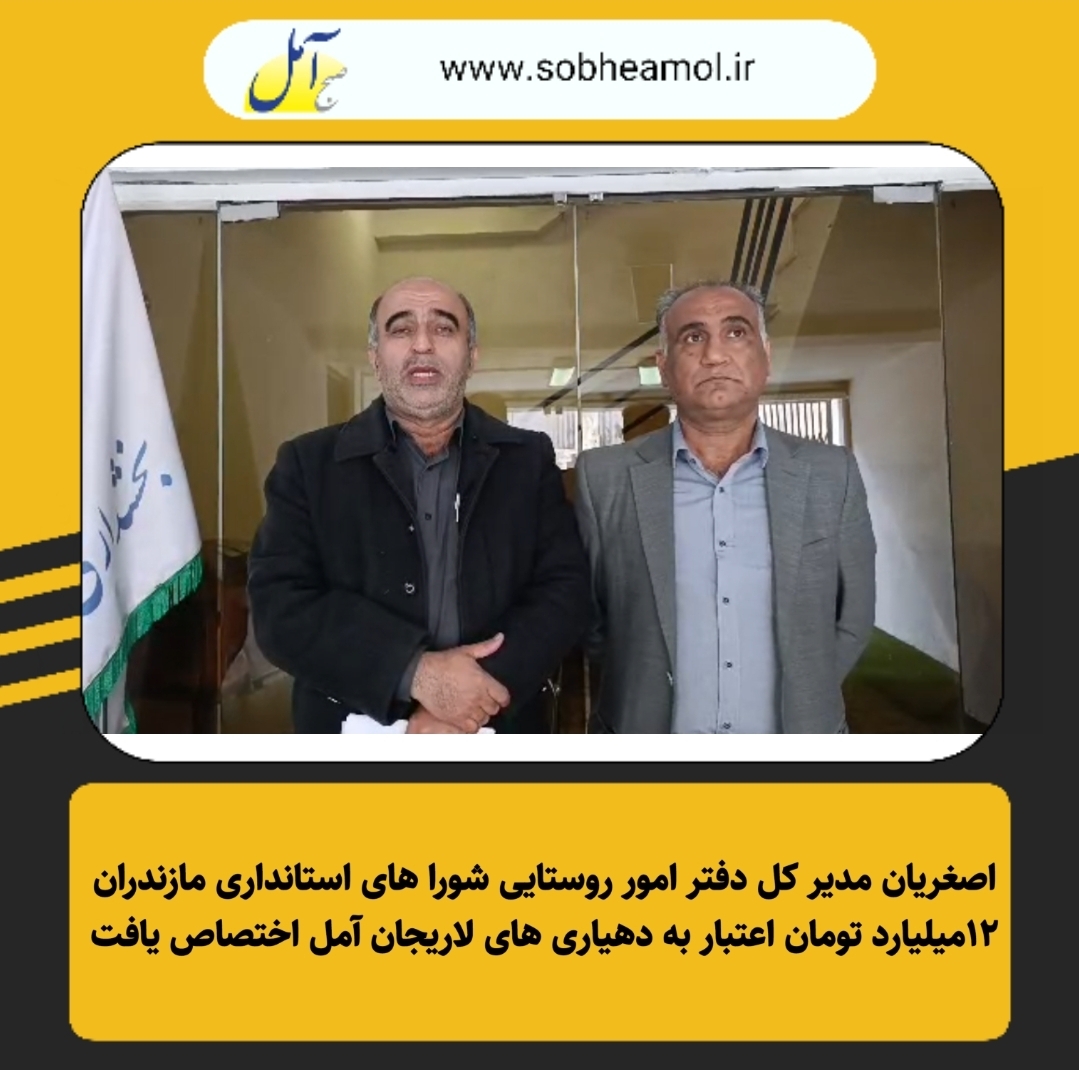 اصغریان مدیر کل دفتر امور روستایی شورا های استانداری مازندران ۱۲میلیارد تومان اعتبار به دهیاری های لاریجان آمل اختصاص یافت اعتباری که قرار است موتور