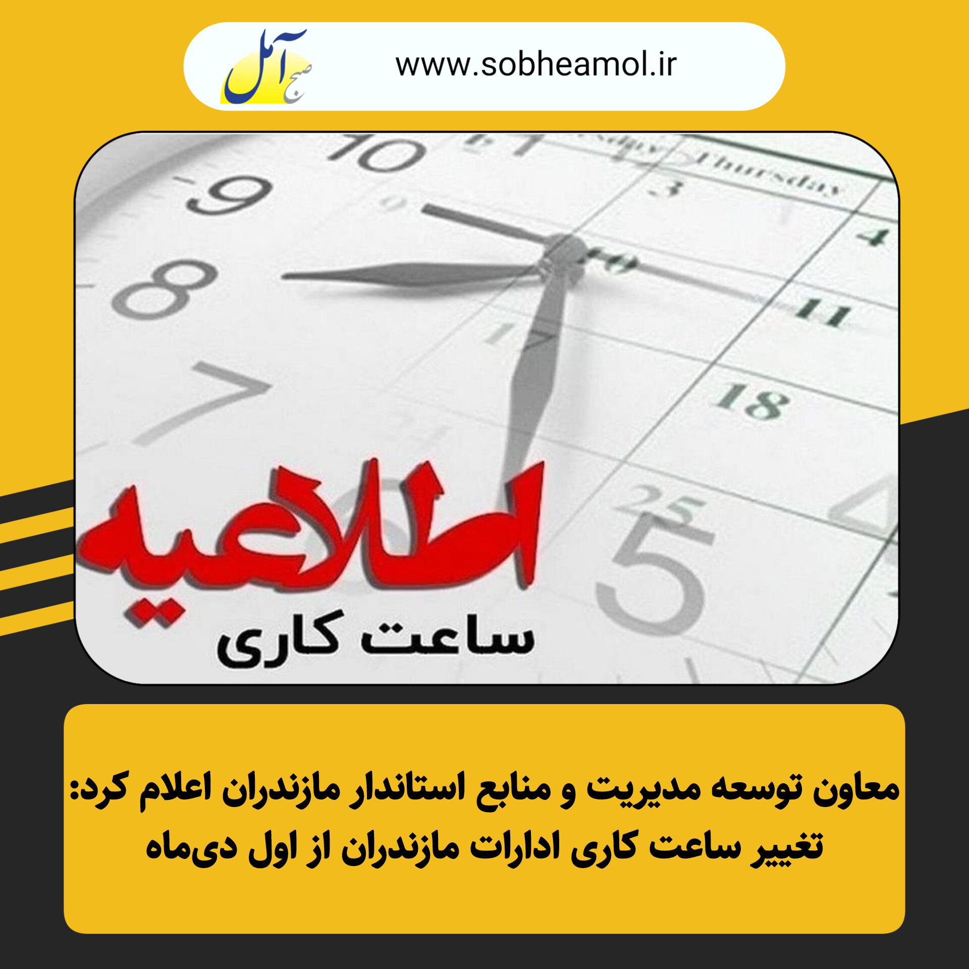 معاون استاندار مازندران، طی بخشنامهای به دستگاههای اجرایی استان، از تغییر ساعت کاری ادارات خبر دادند.