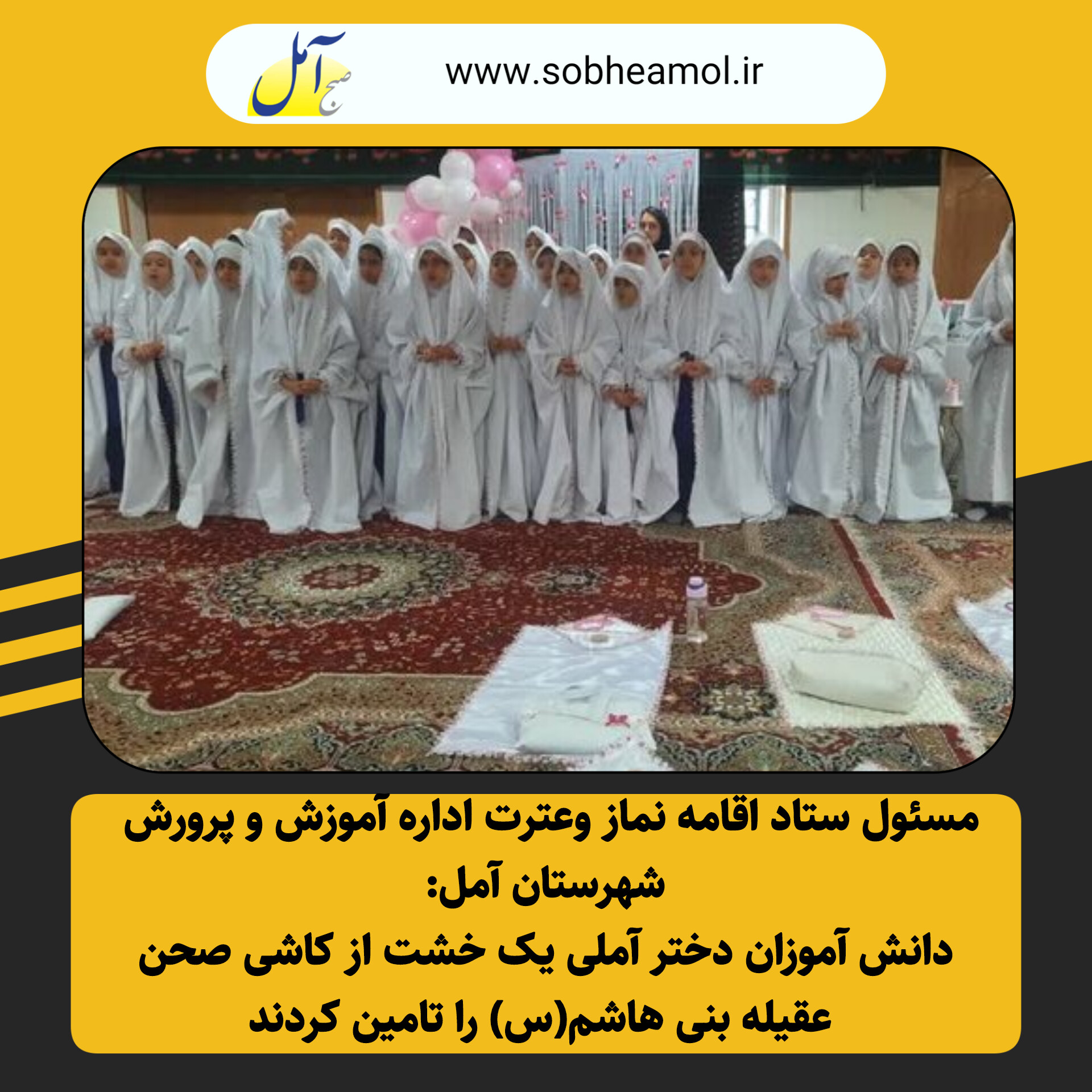جشن تکلیف حدود ۲۰۰ دانش آموز دختر مدرسه شهید صابر آمل درجوار پنج شهید گمنام در حسینیه لالههای زهرایی این شهر با حضور اعضای ستاد