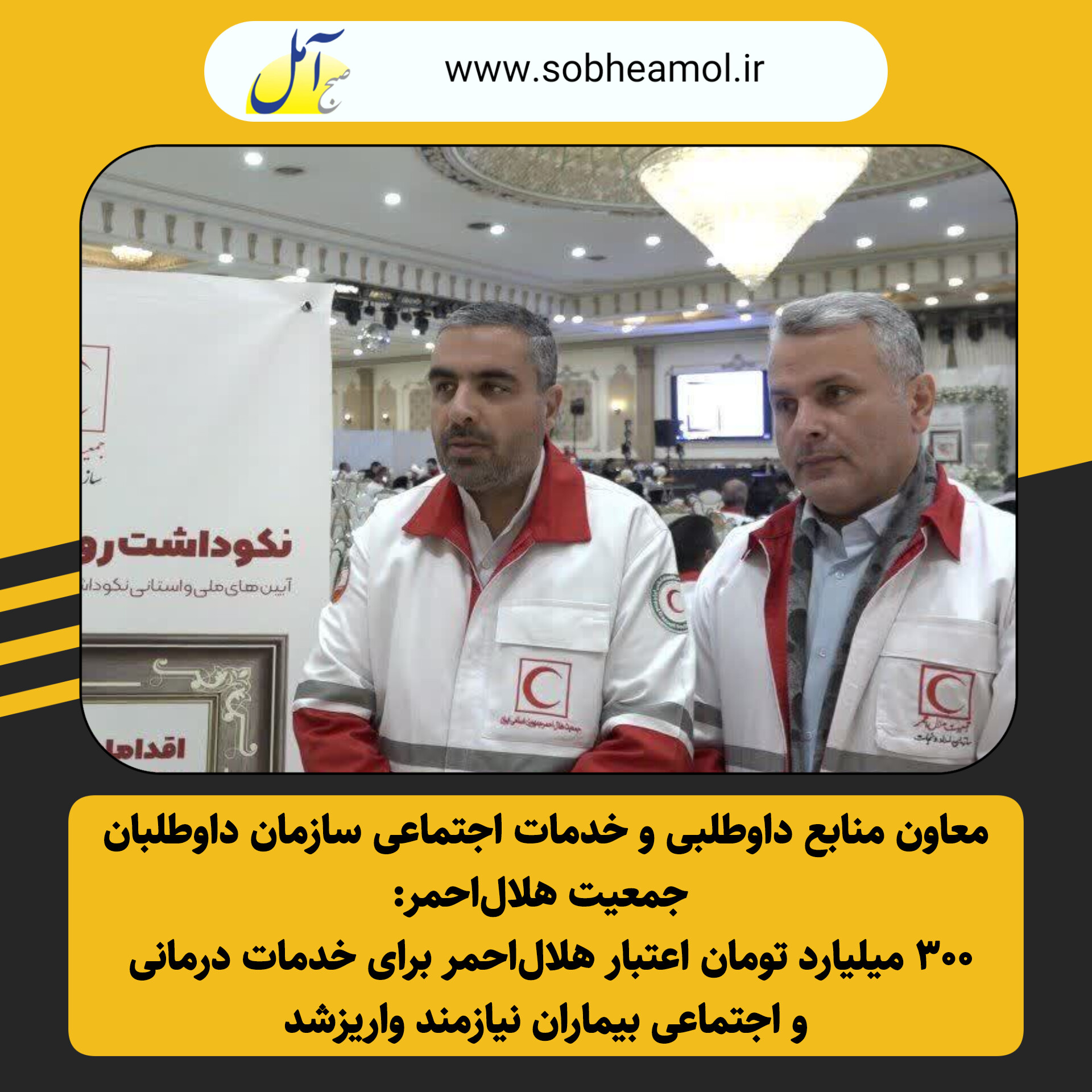 معاون منابع داوطلبی و خدمات اجتماعی سازمان داوطلبان جمعیت هلالاحمر از واریز حدود ۳۰۰ میلیارد تومان اعتبار برای ارائه خدمات درمانی، دارویی و اجتماعی به
