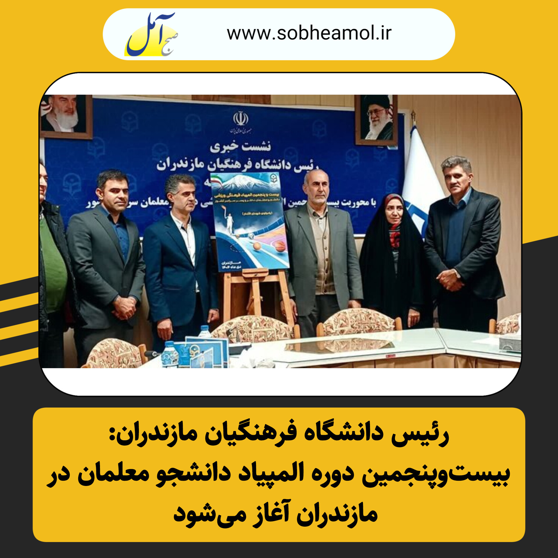 رئیس دانشگاه فرهنگیان مازندران با اعلام این خبر گفت: بیستوپنجمین دوره المپیاد فرهنگی ـ ورزشی دانشجو معلمان سراسر کشور، از دوم دی به میزبانی استان