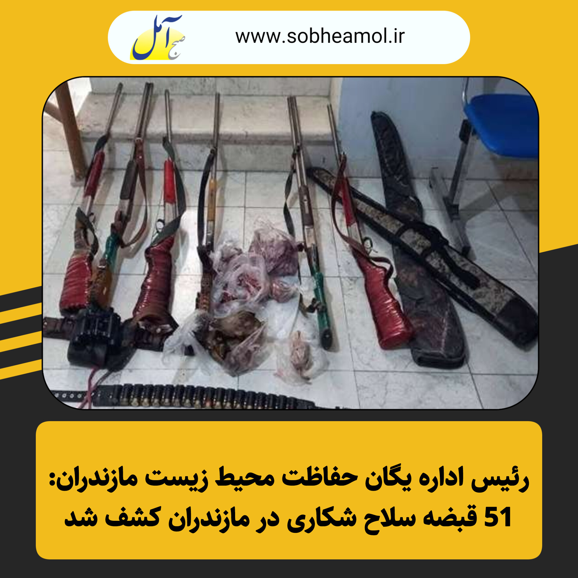 رئیس اداره یگان حفاظت محیط زیست مازندران از کشف و ضبط ۵۱ قبضه سلاح شکاری، ادوات غیرمجاز صید و لاشه ۲۸ پرنده وحشی و مهاجر