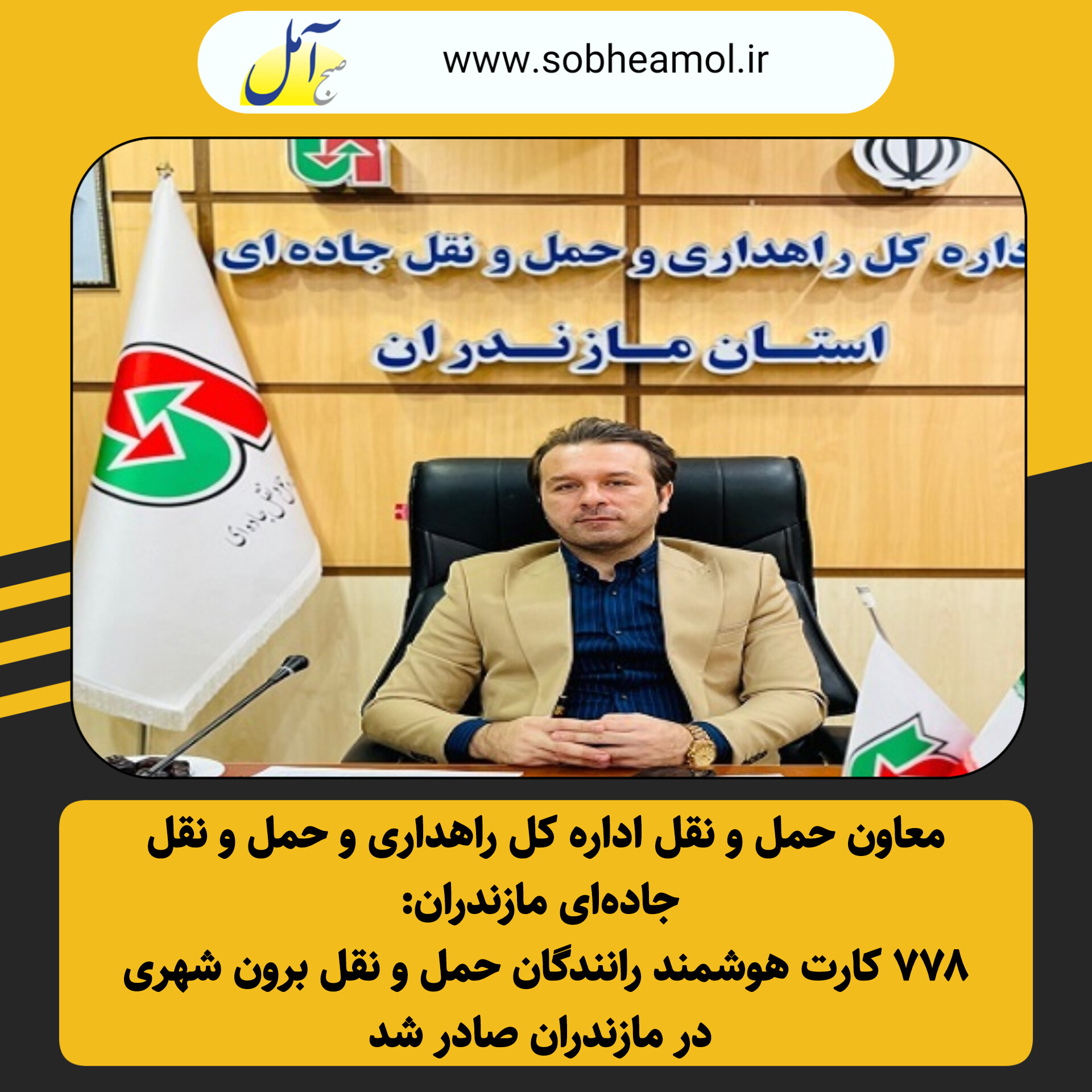 معاون حمل و نقل اداره کل راهداری و حمل و نقل جادهای مازندران از صدور ۷۷۸ کارت هوشمند رانندگان در حوزه حمل و نقل کالا