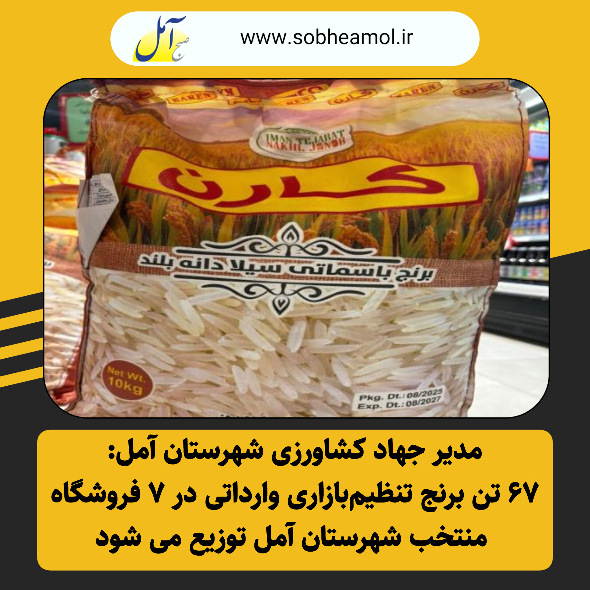مدیر جهاد کشاورزی آمل از توزیع ۶۷ تن برنج تنظیمبازاری وارداتی با قیمت مصوب ۱۲۵ هزار تومان در هفت فروشگاه زنجیرهای و مرکز عرضه در