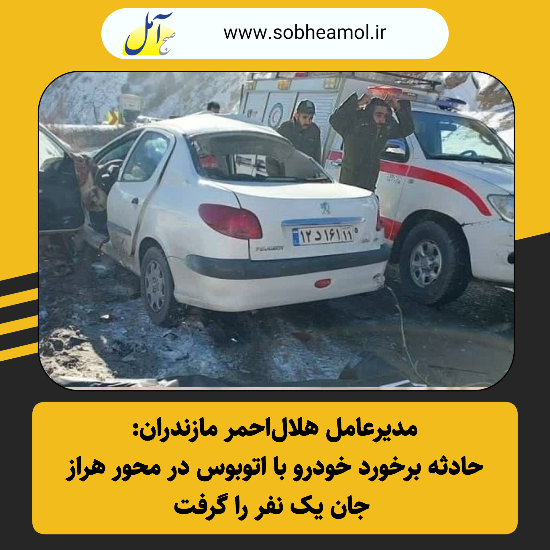 مدیرعامل هلالاحمر مازندران از وقوع حادثه تصادف بین یک دستگاه پژو ۲۰۶ و یک دستگاه اتوبوس در محور هراز خبر داد.