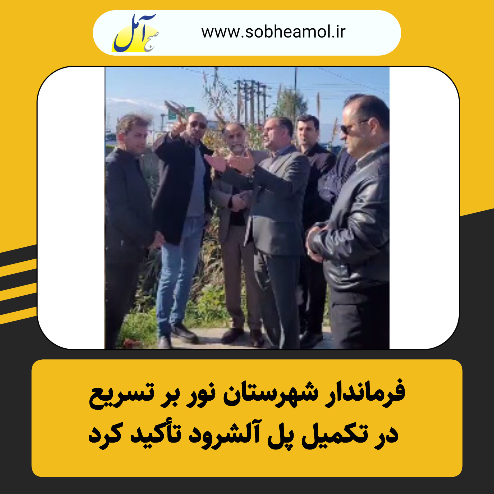 فرماندار شهرستان نور بههمراه نماینده مردم نور و محمودآباد در مجلس شورای اسلامی و جمعی از مسئولان اجرایی، از روند اجرای پروژه پل آلشرود بازدید کرد و بر ضرورت تعیین زمانبندی دقیق و تسریع در تکمیل این پل تأکید نمود.