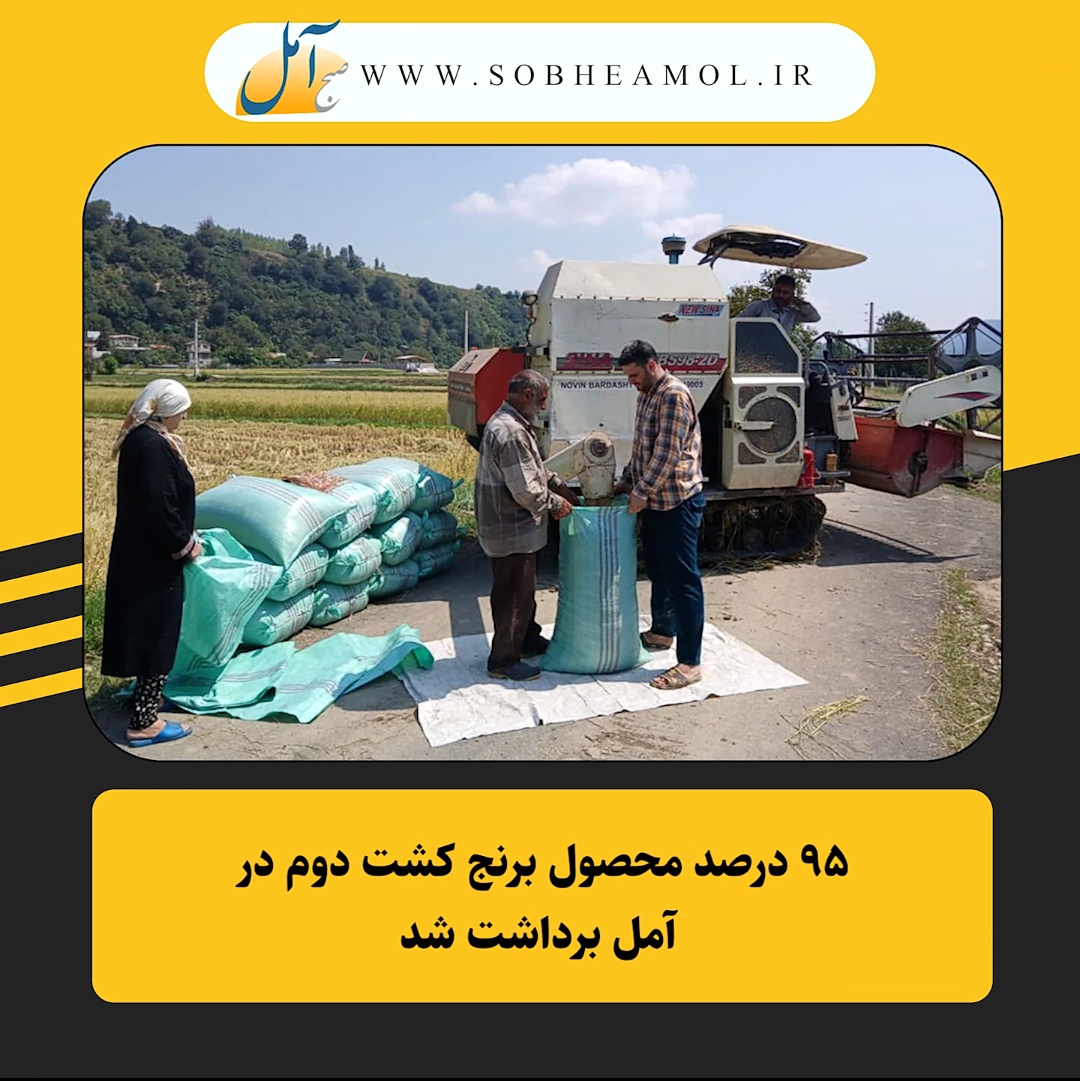 مدیر جهاد کشاورزی آمل از برداشت موفقیتآمیز ۹۵ درصدی محصول برنج از سطح ۲۱ هزار هکتار از اراضی تحت کشت مجدد در این شهرستان خبر